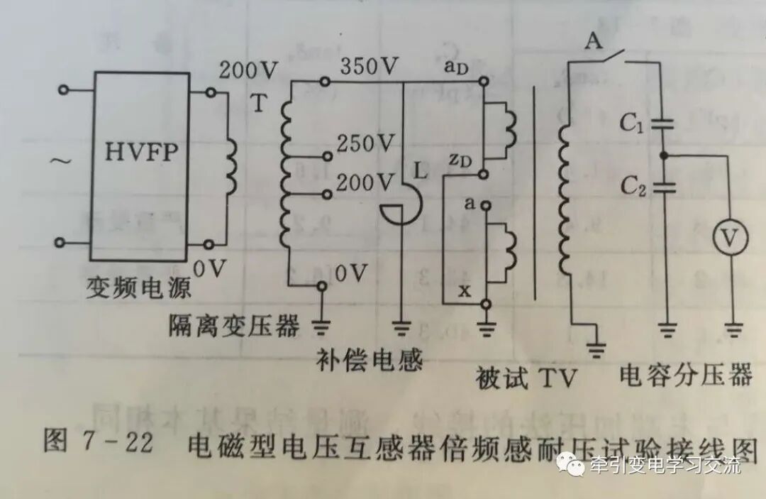 ①用三倍频发生器进行感应耐压试验时,110及220KV等级的压互,在辅助绕组(aD、xD)上施加倍频电压,35KV等级的压互在低压绕组(a、x)上施加倍频电压。