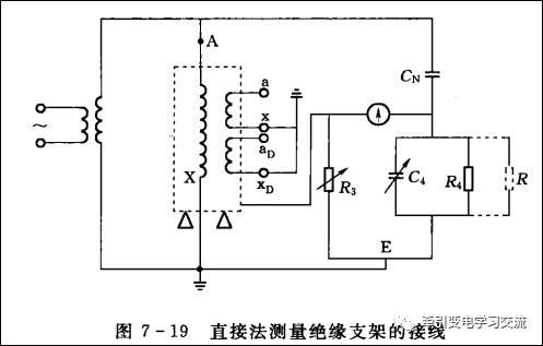 a)间接测量法。测试时A端加压,X端接地,x和xD端与底座相连接入电桥。需采取底座对地绝缘和底座接地两种方法,分别测出下铁芯对二、三次绕组及底座(支架)的tan1和C1,下铁芯对二、三次绕组的tan2和C2,然后计算求出铁芯对绝缘支架的tan=(C1*tan1-C2*tan2)/(C1-C2)。