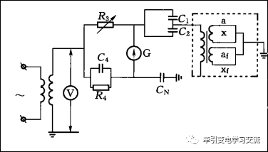 一般采用末端屏蔽法,末端屏蔽法可以分别测量一次绕组对二次绕组(ax)、三次绕组(aDxD)的tan及测量绝缘支架的tan。