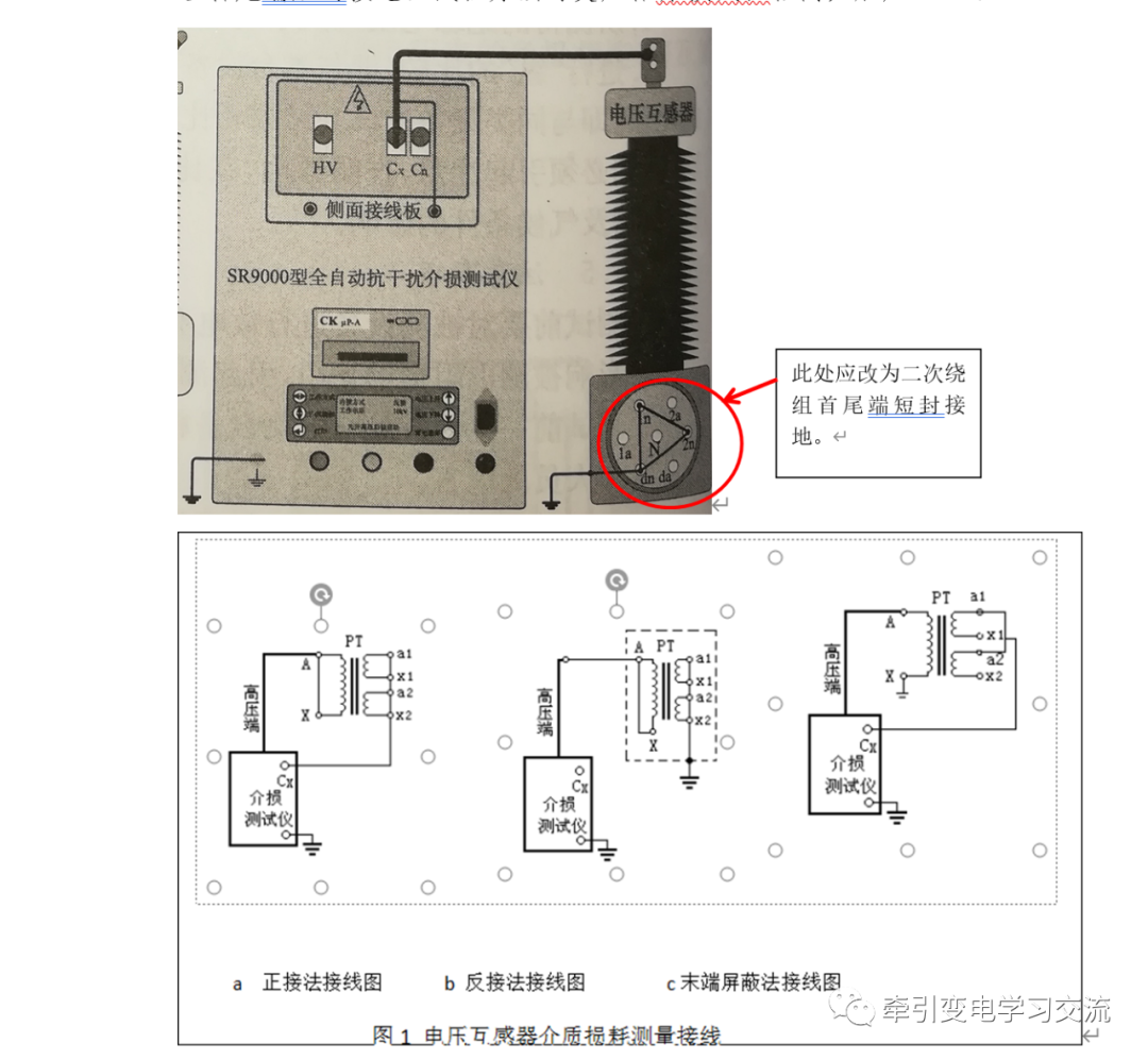 1、试验方法:可采用自激法测试介质损耗,由精密电压源给电压互感器二次绕组施加一个电压(此电压换算到一次侧应为3KV),全自动抗干扰介质损耗仪采用正接法接线,