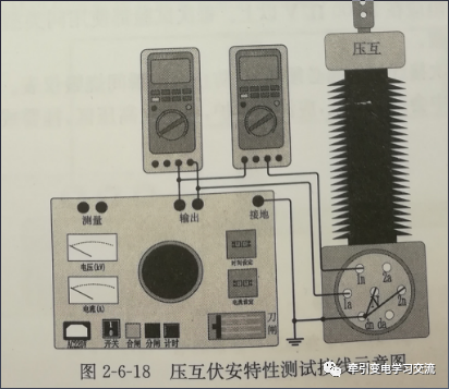 测试压互的空载励磁特性,将带调压器输出端并入标准电压表,输出回路中串入标准电流表,接到压互的被测绕组上,其余绕组的尾端(n、N)均接地。互感器测试台