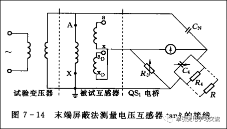 ① 测量一次绕组对二、三次绕组的tan(末端屏蔽法)。一般接线原理图如上图7-14所示,试验变压器是给一次绕组提供高压的外接电源。
